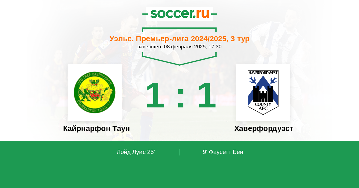 Протокол матча Кайрнарфон Таун против Хаверфордуэст