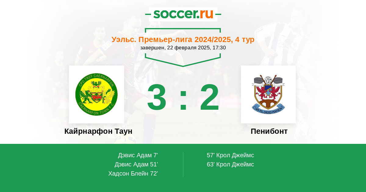 Протокол матча Кайрнарфон Таун против Пенибонт