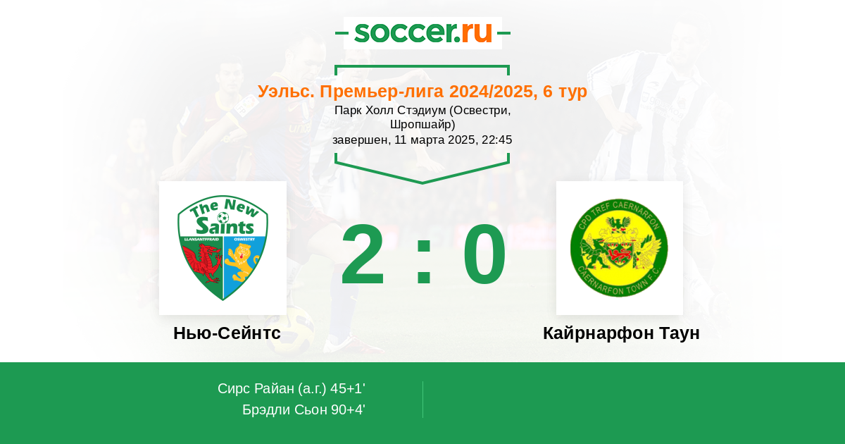 Протокол матча Нью-Сейнтс против Кайрнарфон Таун