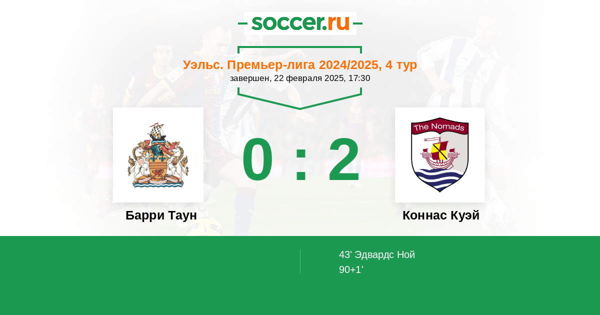 Протокол матча Барри Таун против Коннас Куэй