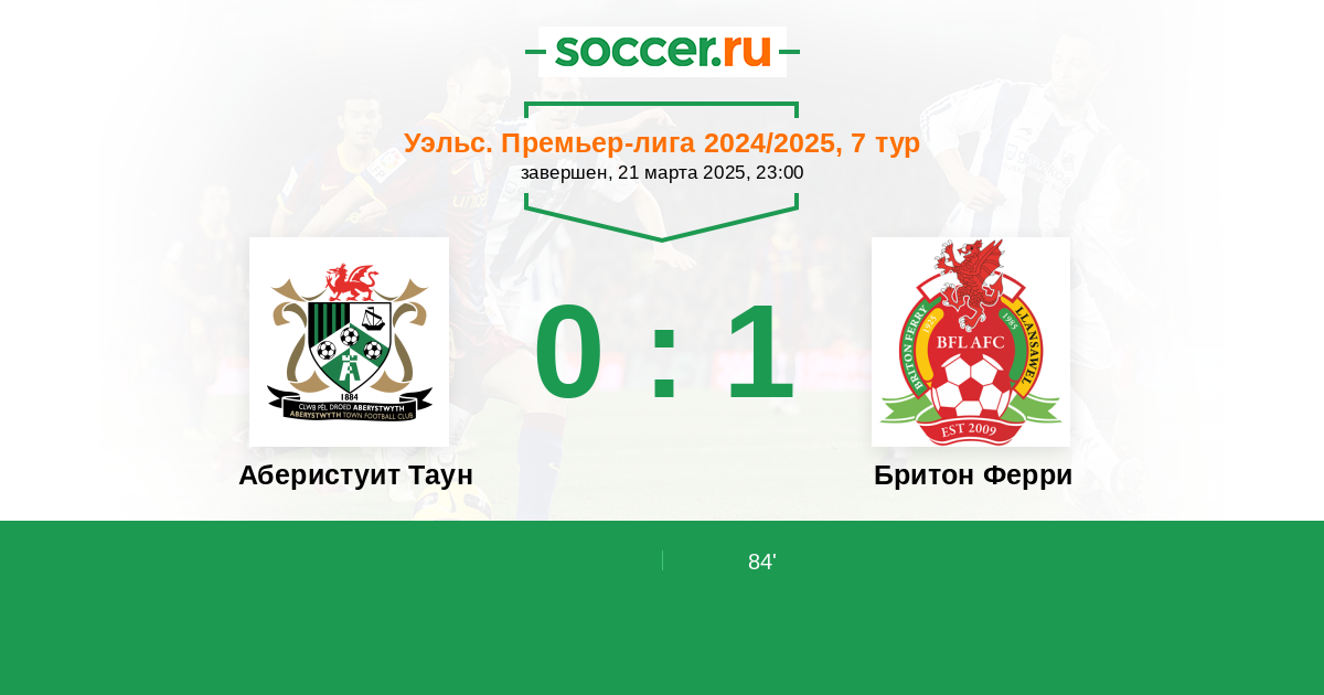 Протокол матча Аберистуит Таун против Бритон Ферри