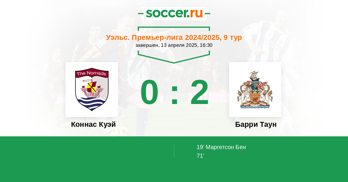 Протокол матча Коннас Куэй против Барри Таун