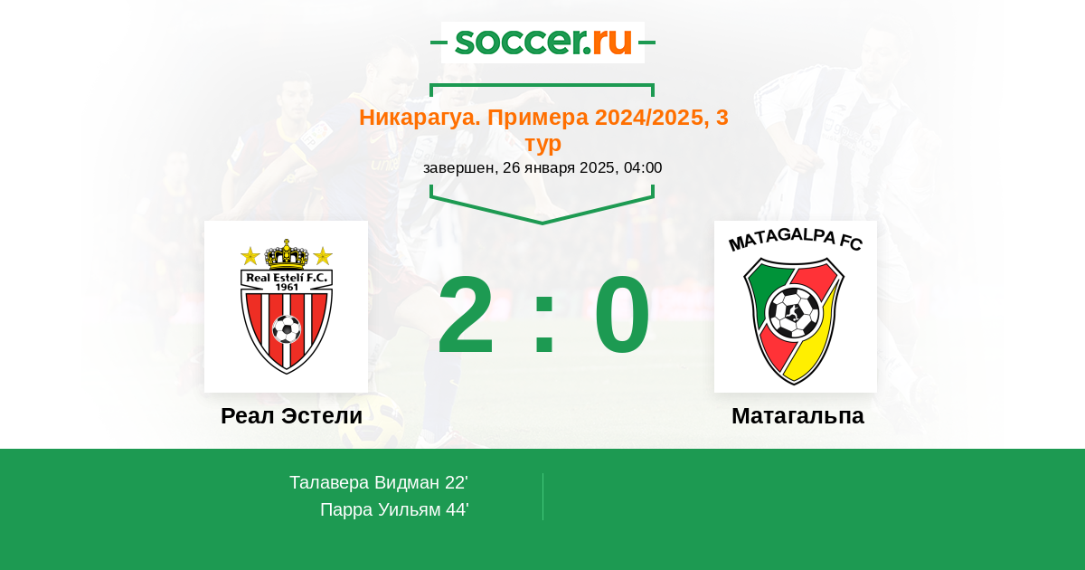 Протокол матча Реал Эстели против Матагальпа