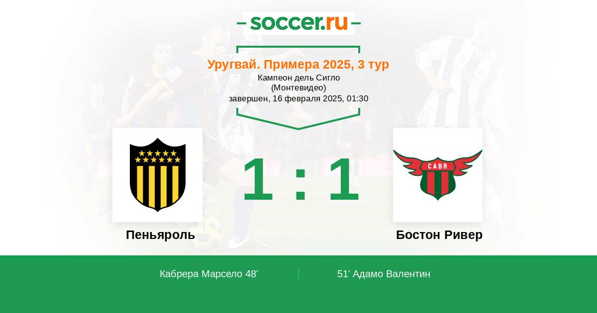 Протокол матча Пеньяроль против Бостон Ривер