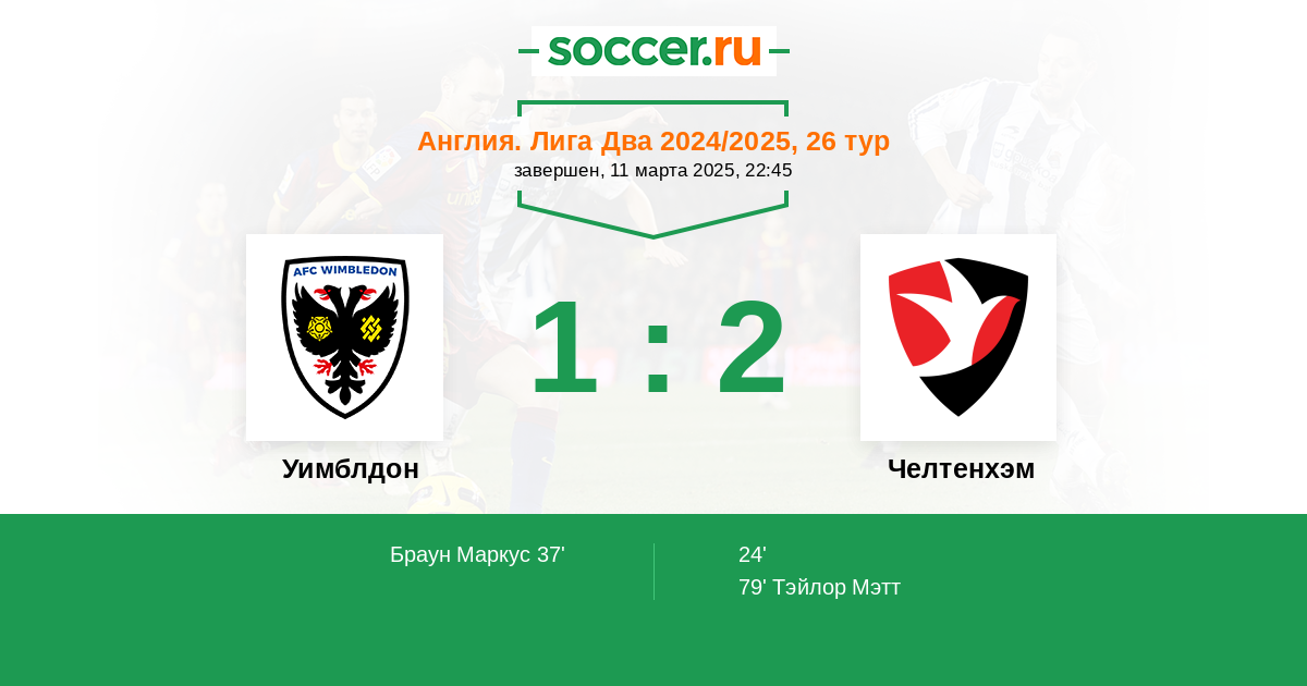 Протокол матча Уимблдон против Челтенхэм