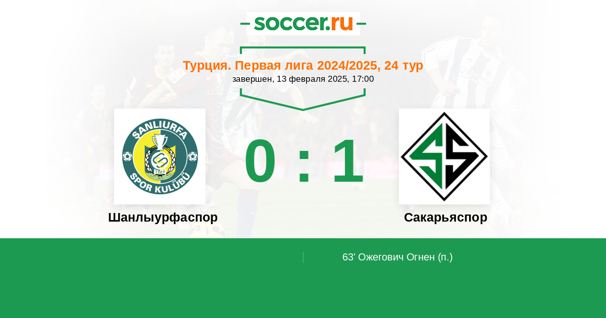 Протокол матча Шанлыурфаспор против Сакарьяспор