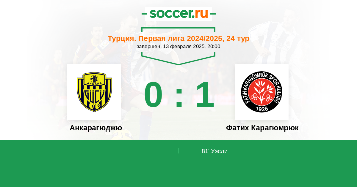 Протокол матча Анкарагюджю против Фатих Карагюмрюк