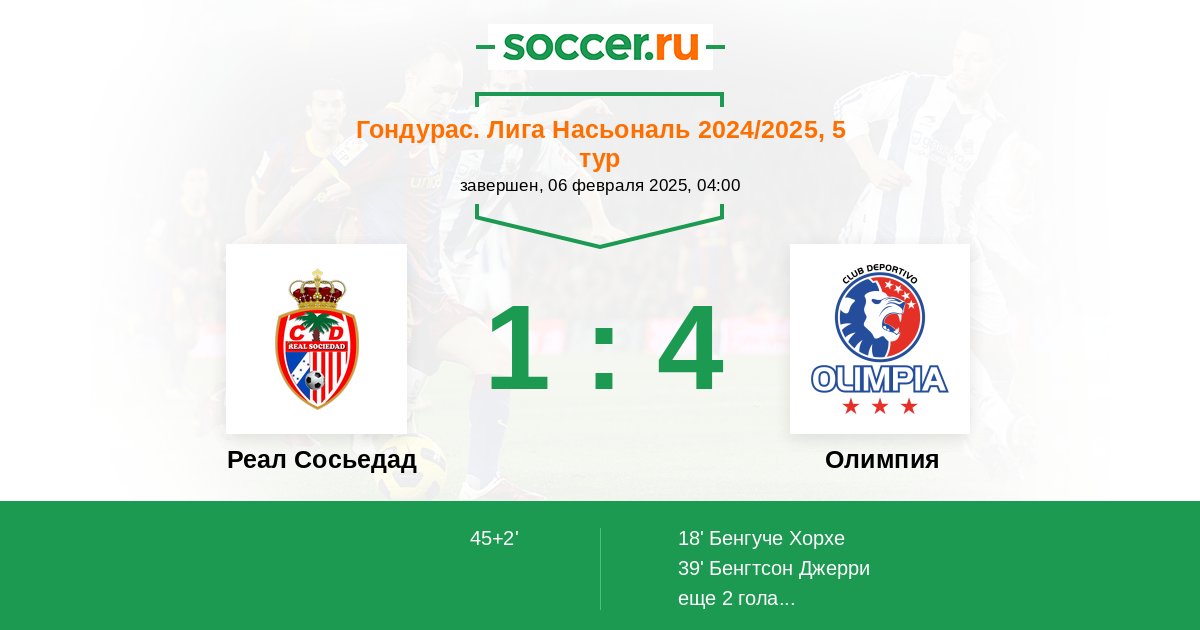 Протокол матча Реал Сосьедад против Олимпия