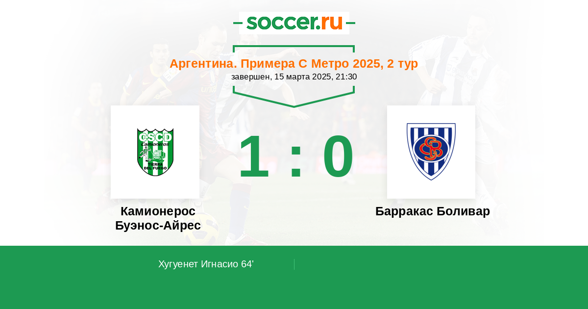 Протокол матча Камионерос Буэнос-Айрес против Барракас Боливар