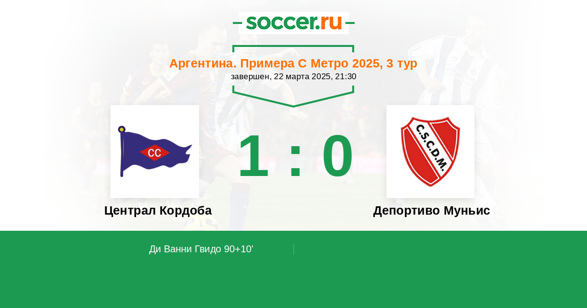 Протокол матча Централ Кордоба против Депортиво Муньис