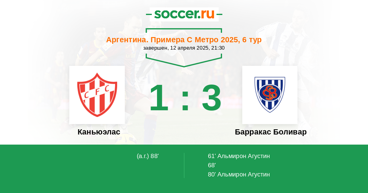 Протокол матча Каньюэлас против Барракас Боливар