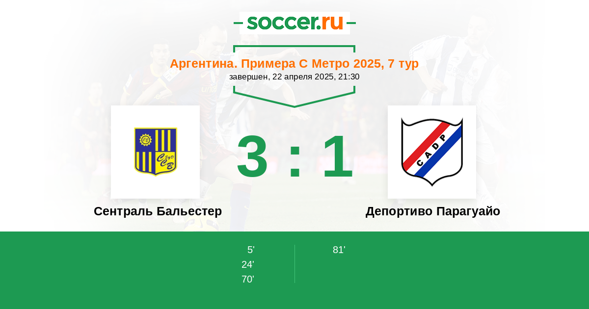Протокол матча Сентраль Бальестер против Депортиво Парагуайо