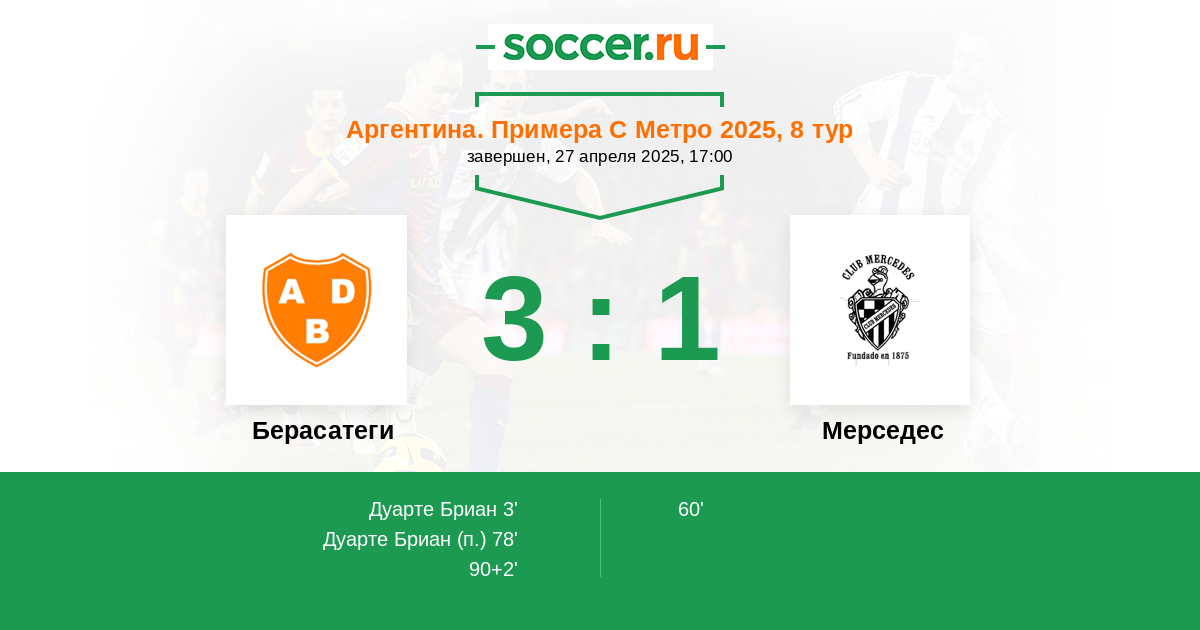 Протокол матча Берасатеги против Мерседес