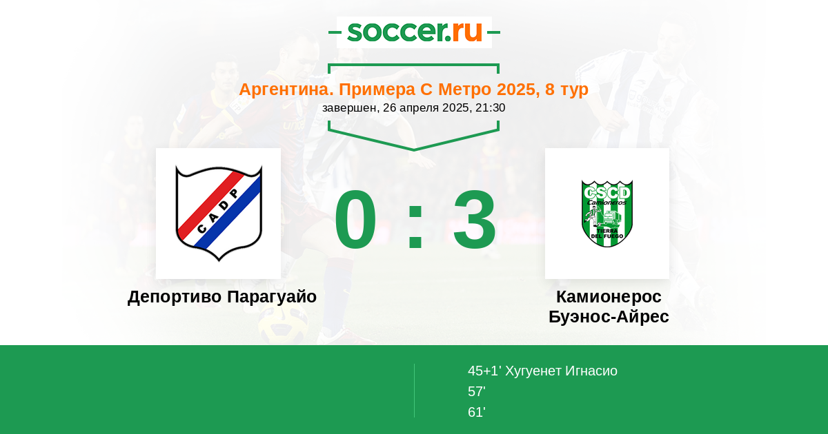 Протокол матча Депортиво Парагуайо против Камионерос Буэнос-Айрес