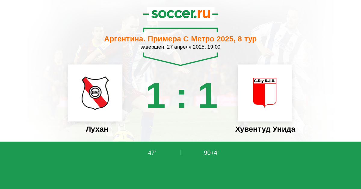 Протокол матча Лухан против Хувентуд Унида