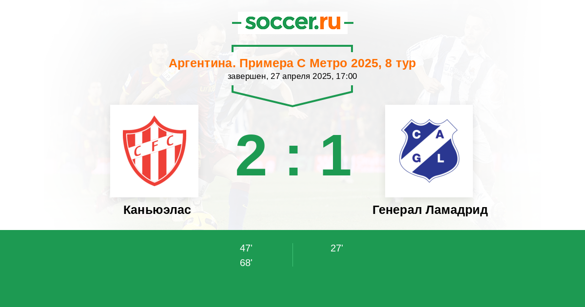 Протокол матча Каньюэлас против Генерал Ламадрид