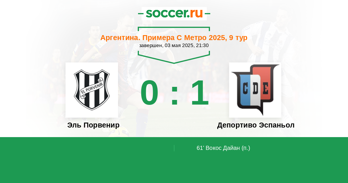 Протокол матча Эль Порвенир против Депортиво Эспаньол