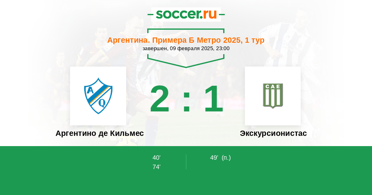 Протокол матча Аргентино де Кильмес против Экскурсионистас