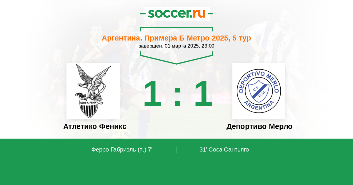 Протокол матча Атлетико Феникс против Депортиво Мерло