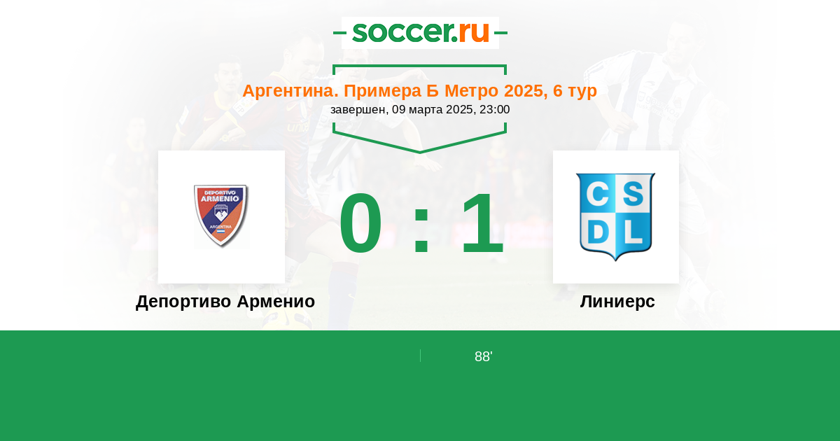Протокол матча Депортиво Арменио против Линиерс