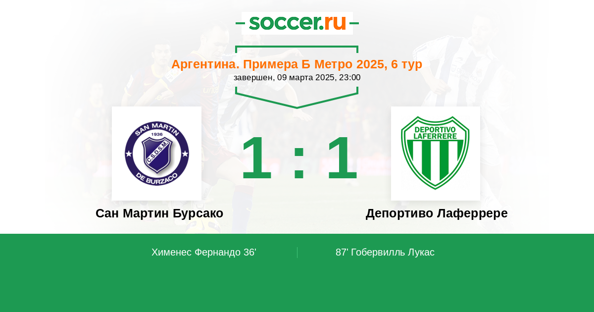 Протокол матча Сан Мартин Бурсако против Депортиво Лаферрере