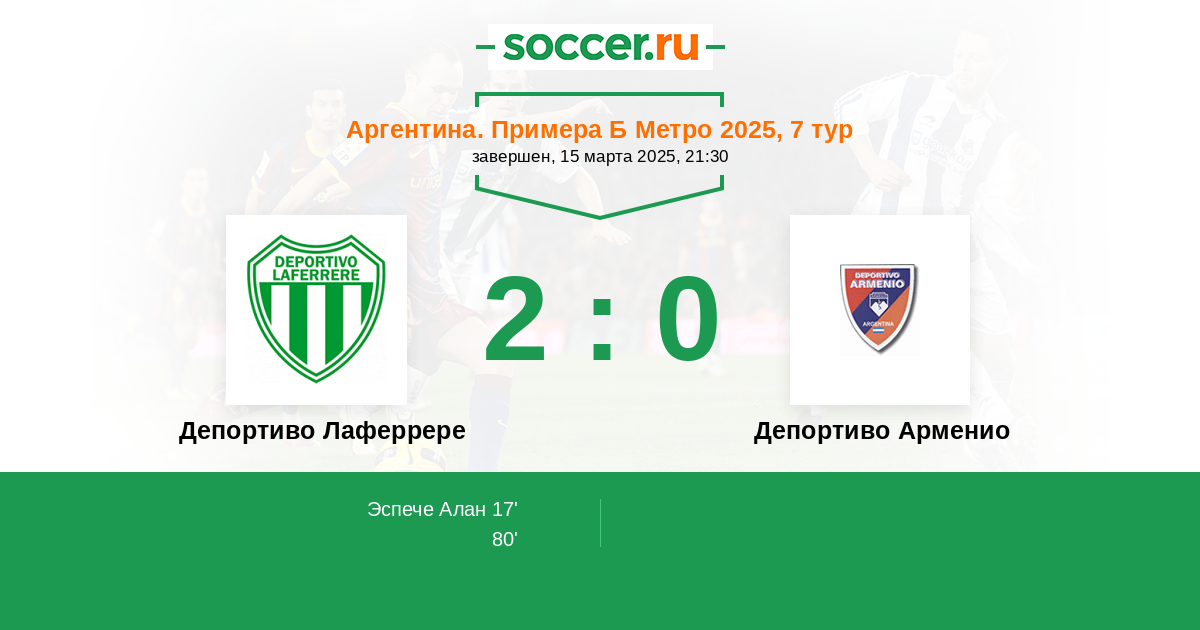 Протокол матча Депортиво Лаферрере против Депортиво Арменио