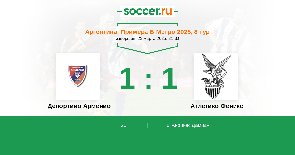 Протокол матча Депортиво Арменио против Атлетико Феникс