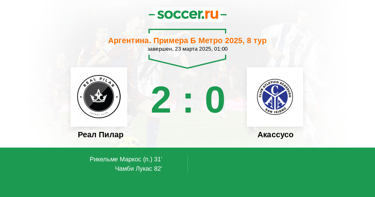 Протокол матча Реал Пилар против Акассусо