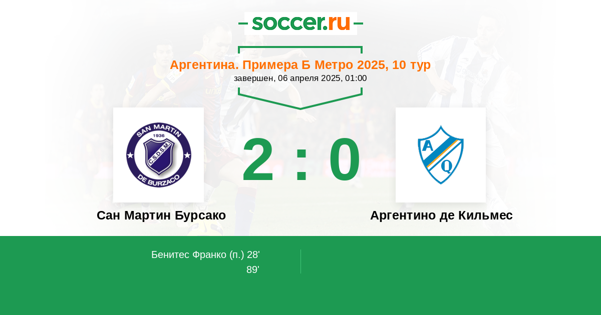 Протокол матча Сан Мартин Бурсако против Аргентино де Кильмес