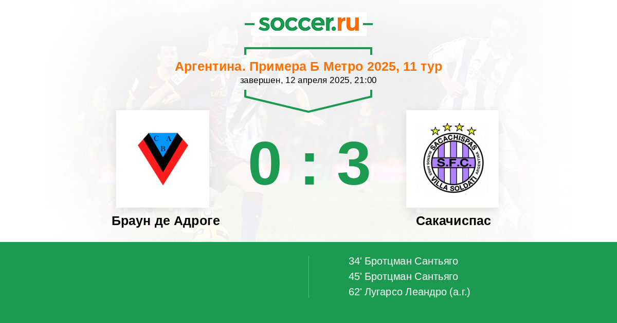Протокол матча Браун де Адроге против Сакачиспас