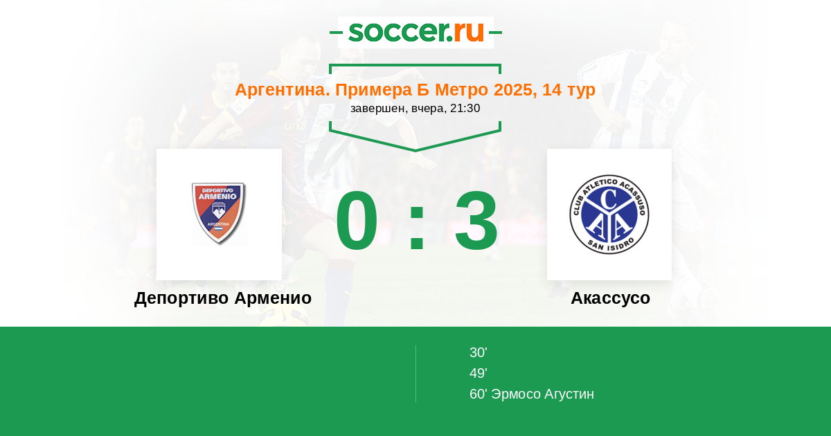 Протокол матча Депортиво Арменио против Акассусо
