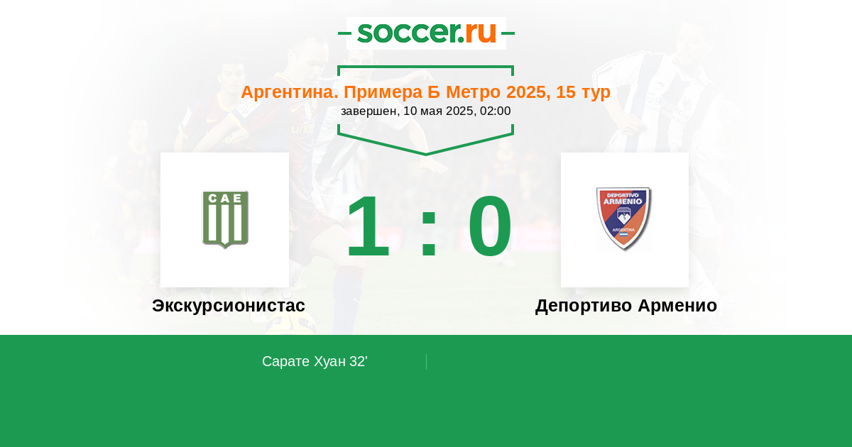 Протокол матча Экскурсионистас против Депортиво Арменио