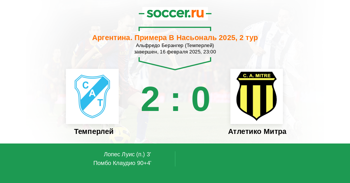Протокол матча Темперлей против Атлетико Митра