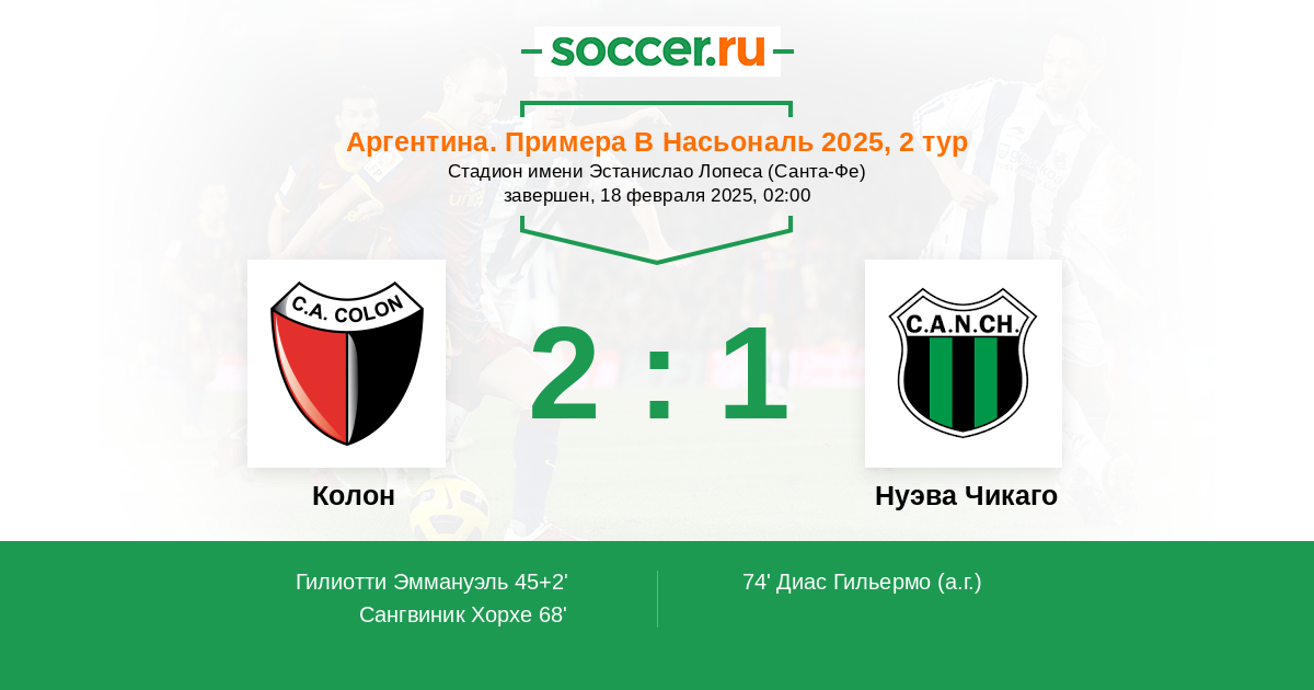 Протокол матча Колон против Нуэва Чикаго