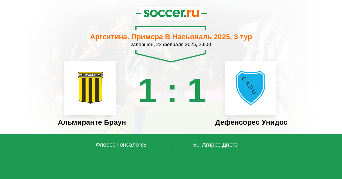 Протокол матча Альмиранте Браун против Дефенсорес Унидос