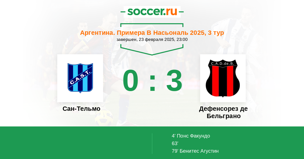 Протокол матча Сан-Тельмо против Дефенсорез де Бельграно