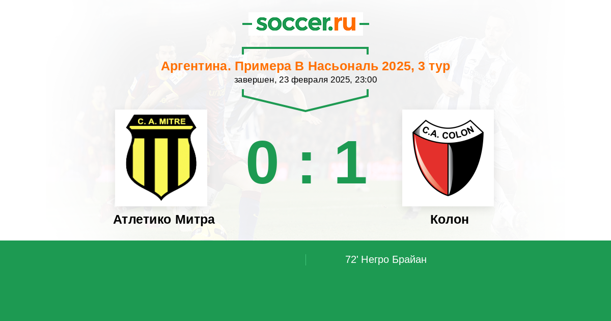 Протокол матча Атлетико Митра против Колон