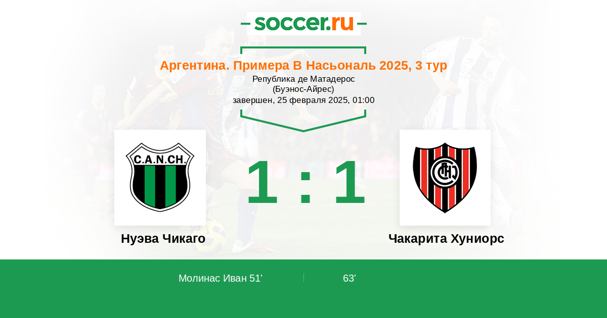 Протокол матча Нуэва Чикаго против Чакарита Хуниорс