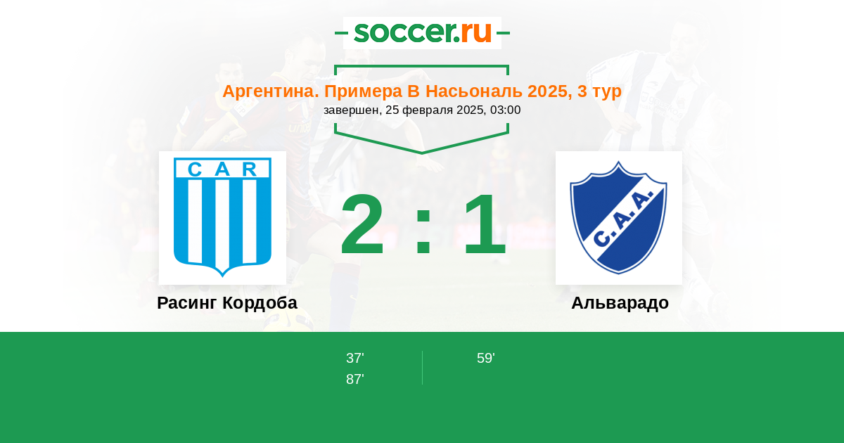 Протокол матча Расинг Кордоба против Альварадо