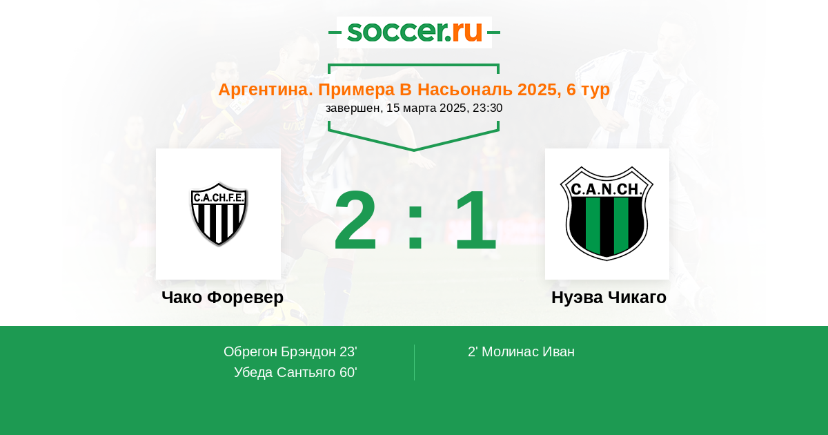 Протокол матча Чако Форевер против Нуэва Чикаго