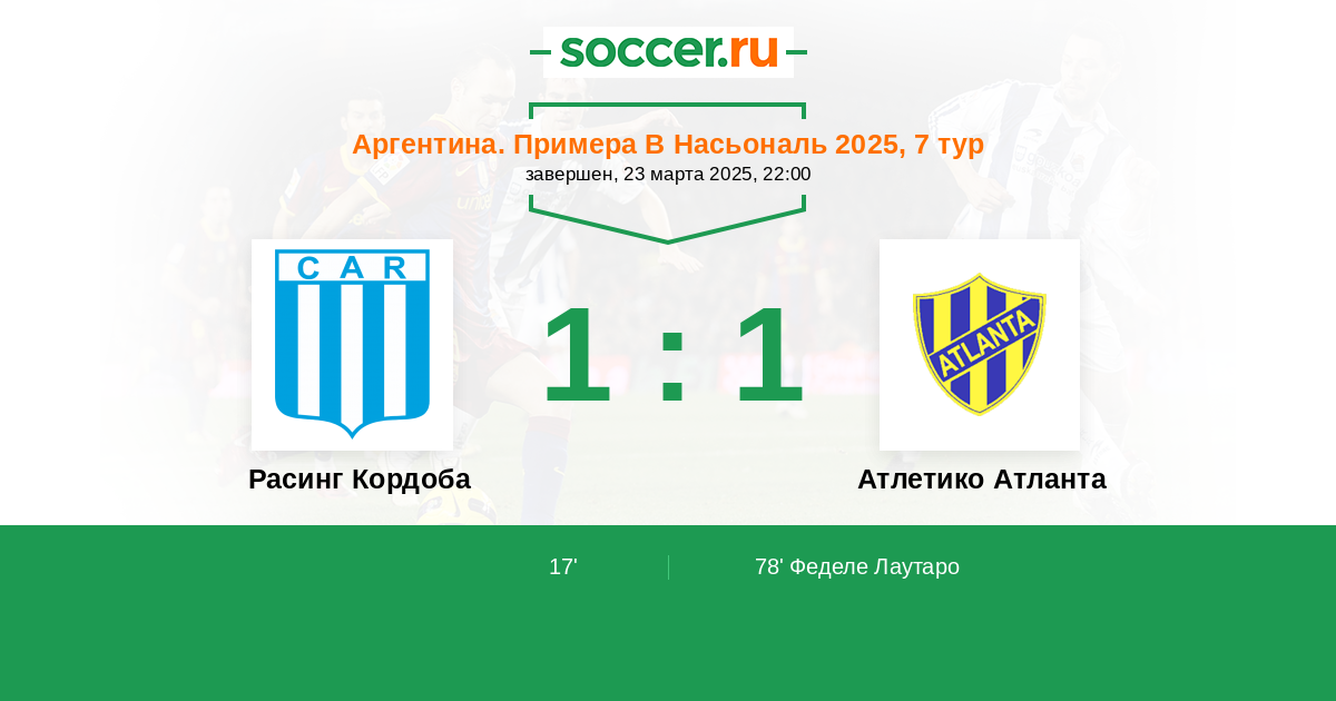Протокол матча Расинг Кордоба против Атлетико Атланта
