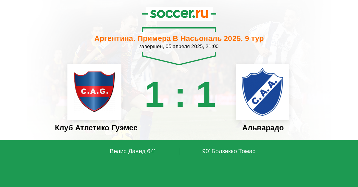 Протокол матча Атлетико Гуэмес против Альварадо