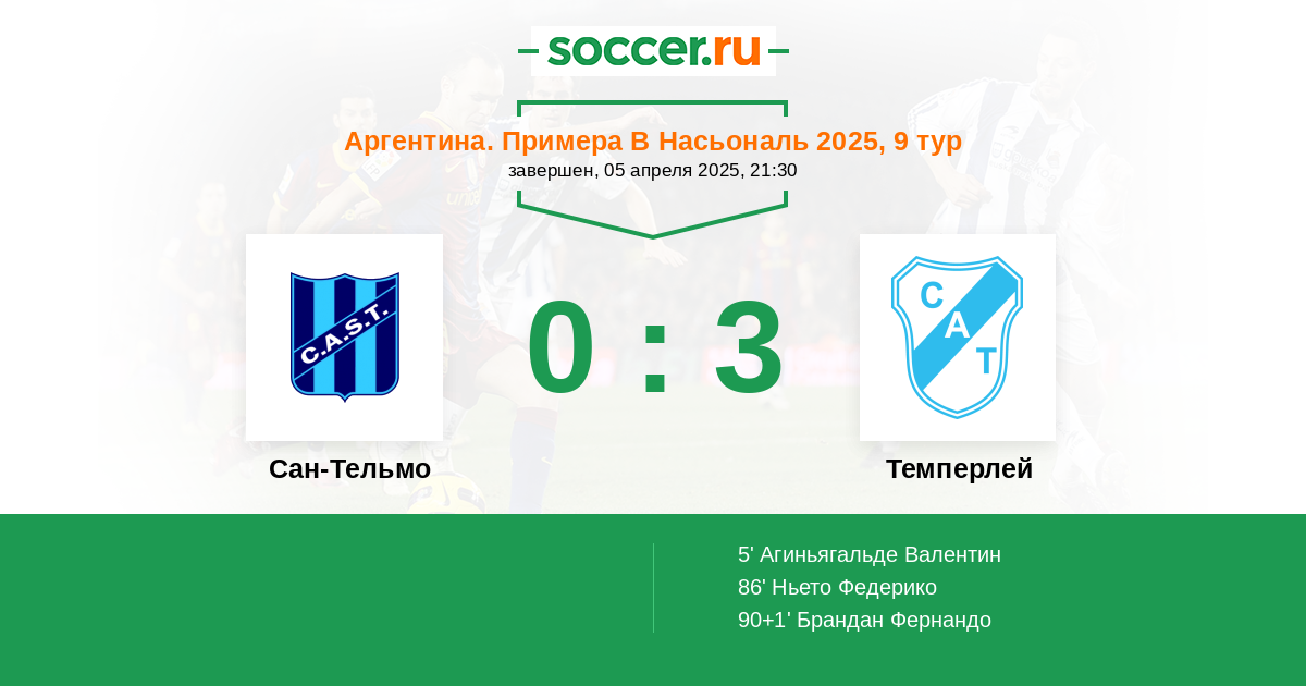 Протокол матча Сан-Тельмо против Темперлей