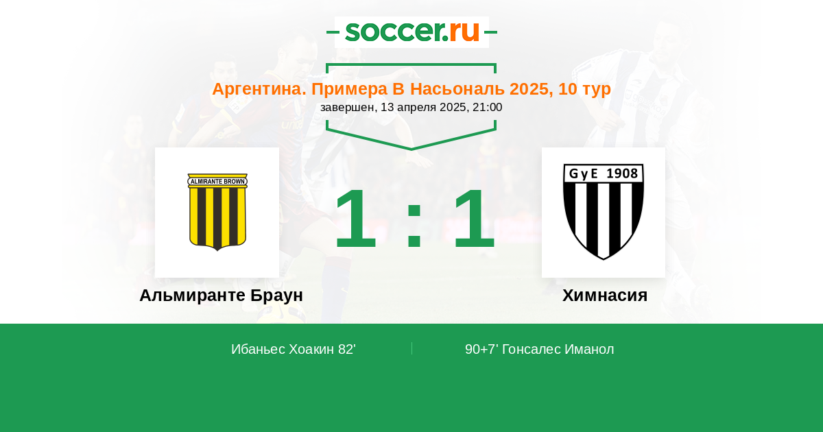 Гол90+7' (1:1) Гонсалес Иманол (6)