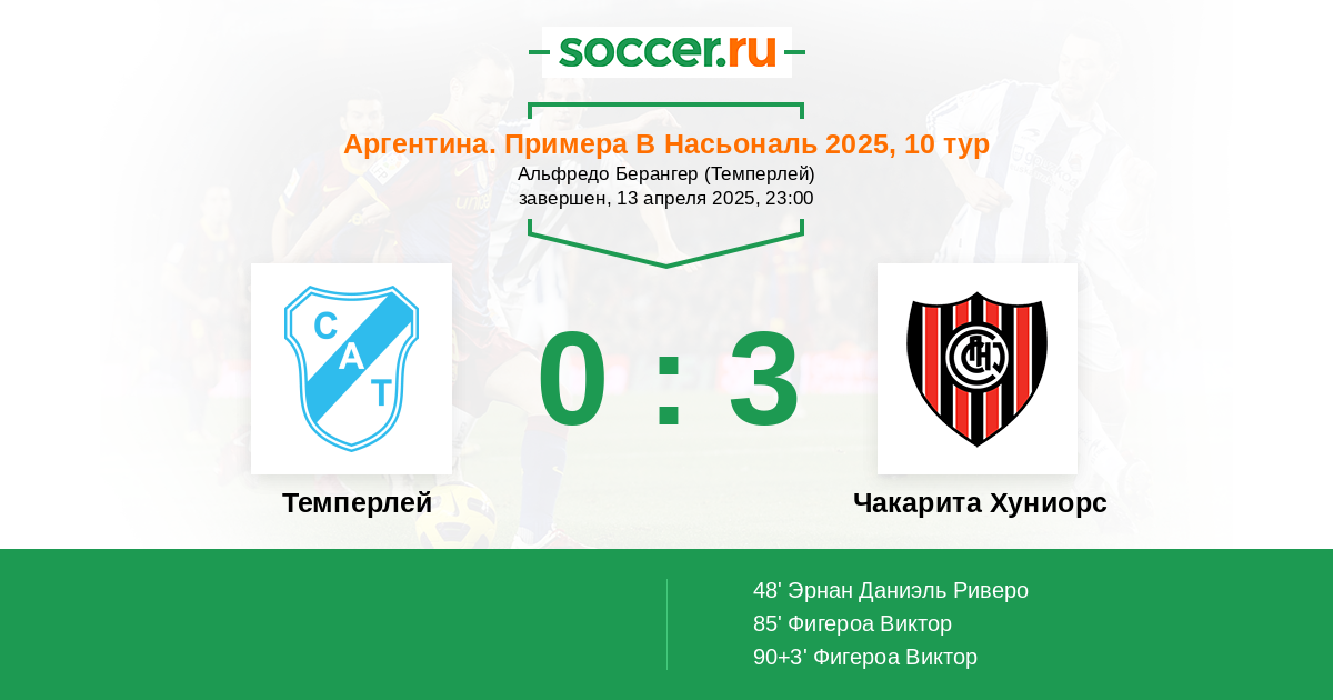 Протокол матча Темперлей против Чакарита Хуниорс
