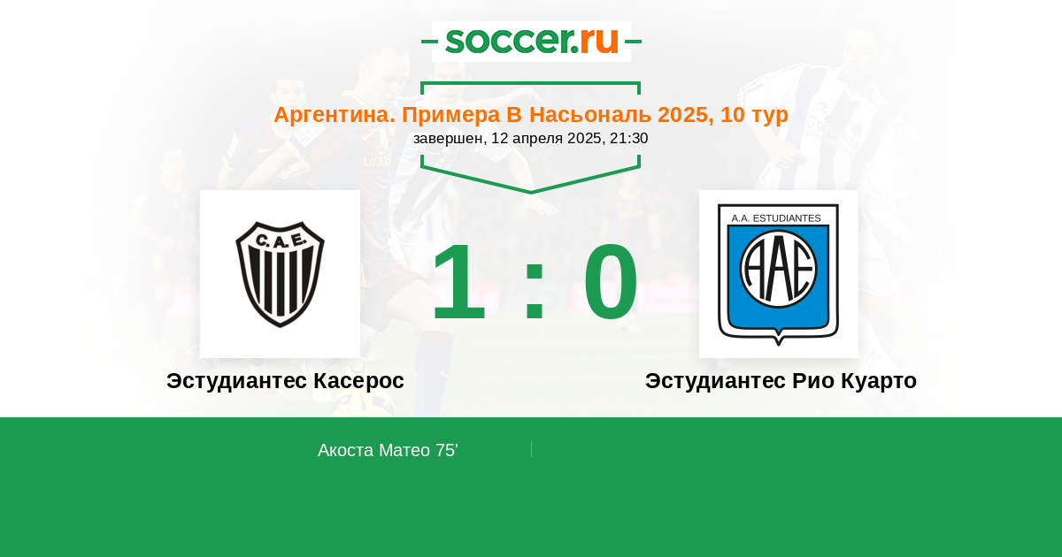 Протокол матча Эстудиантес Касерос против Эстудиантес Рио Куарто