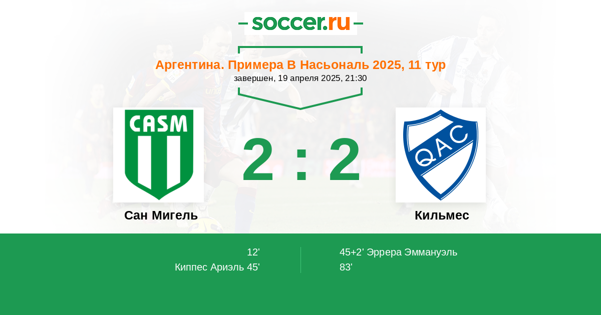 Протокол матча Сан Мигель против Кильмес