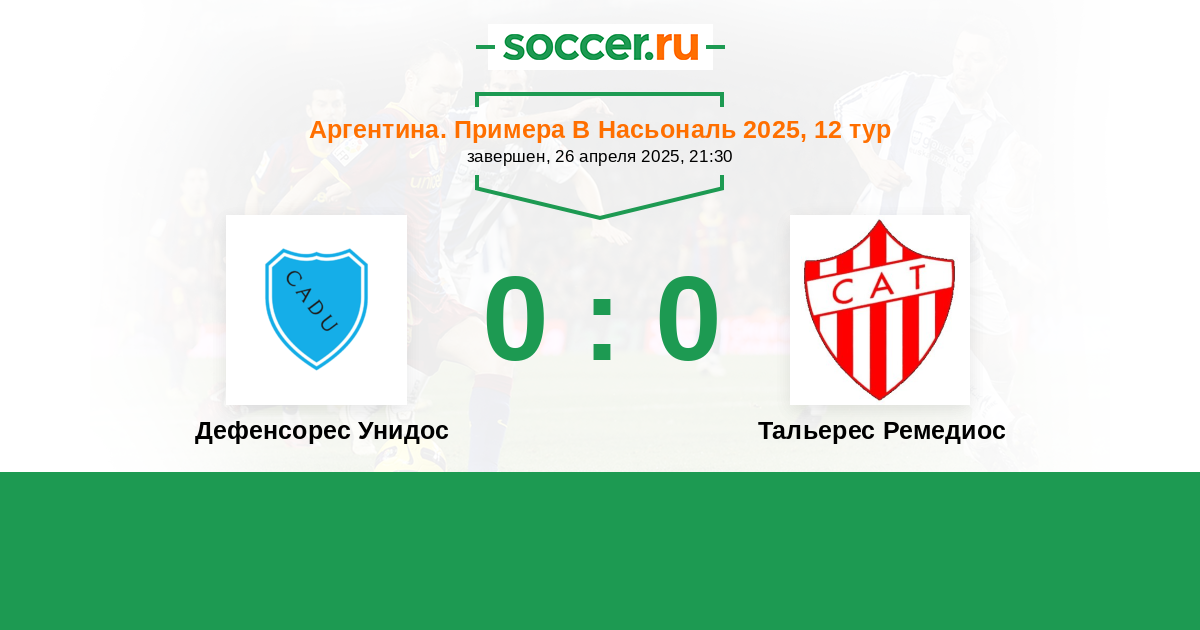Протокол матча Дефенсорес Унидос против Тальерес Ремедиос