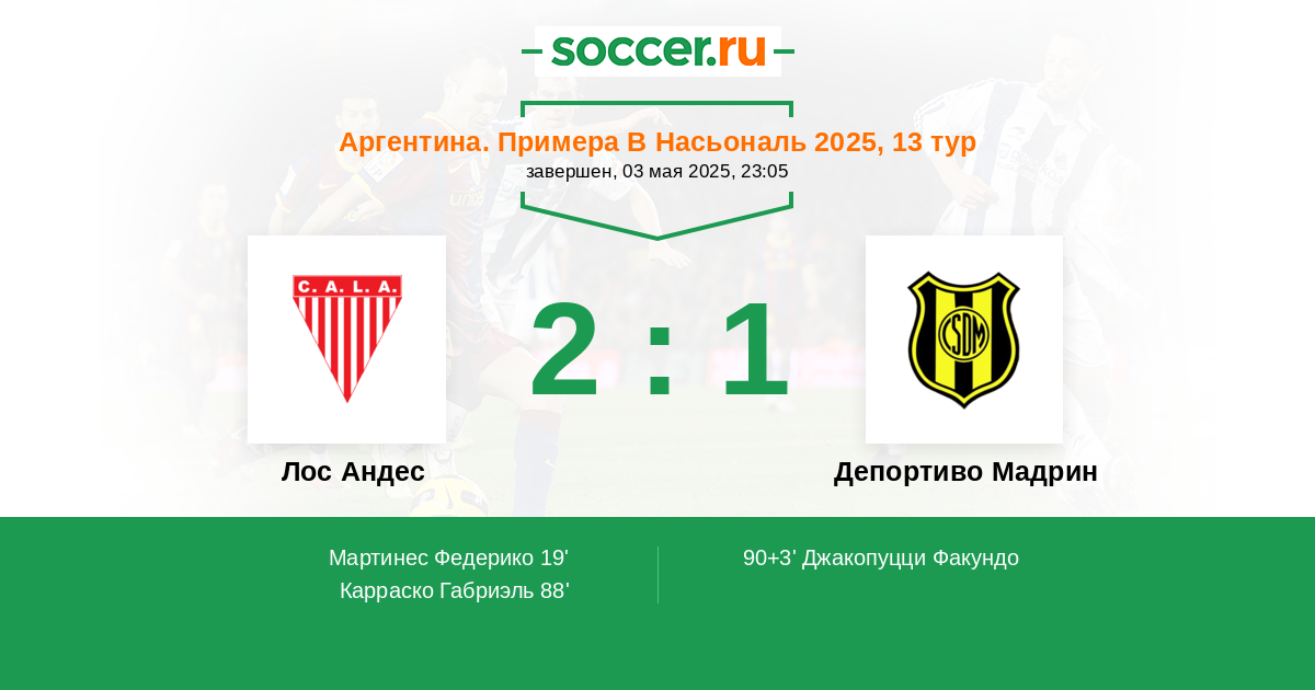 Протокол матча Лос Андес против Депортиво Мадрин