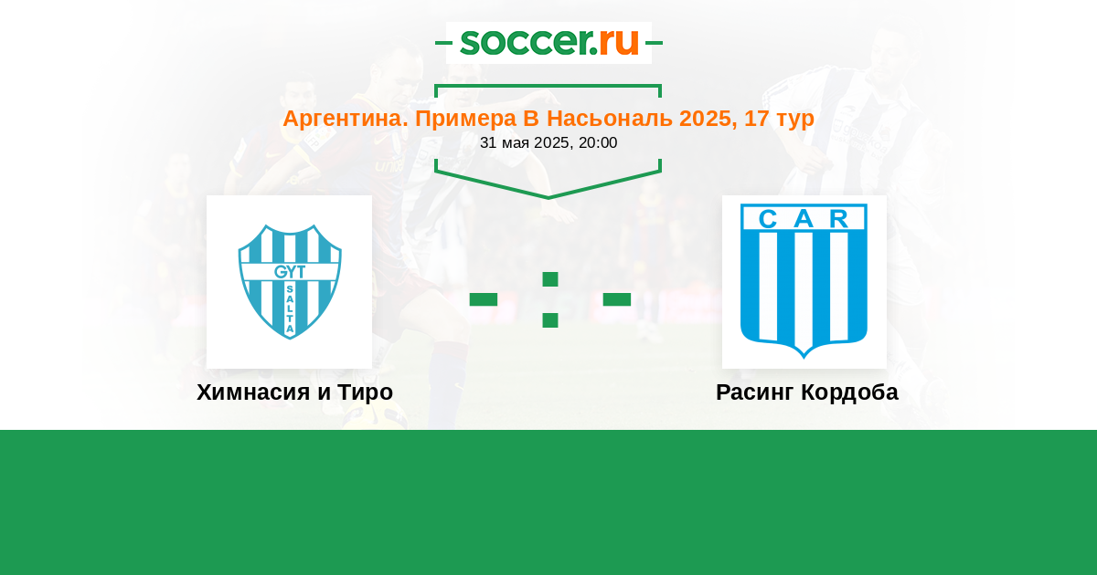 Протокол матча Химнасия и Тиро против Расинг Кордоба